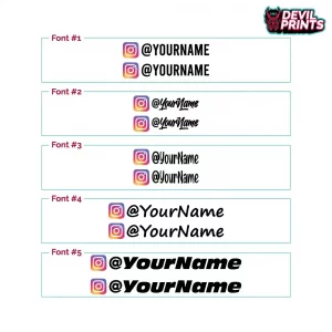 Supplied as a set of two, our custom Instagram stickers are cheap and effective advertising for your social media account, brands, businesses and anything else you can think of. Finished in Premium quality weather-resistant vinyl. Suitable for vehicle windows windows and bodywork, boats, mirrors, laptops or any smooth surface.