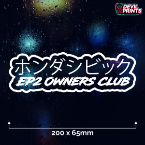 Show off your love for the Honda Civic EP2 Owners Club Logo with this awesome Owners Club Logo Sticker! Designed specifically for EP2 owners, this sticker is the perfect way to personalize your car and let everyone know you’re part of the EP2 community. Made from high-quality vinyl, this logo sticker is durable and weather-resistant, ensuring it will last for years to come.