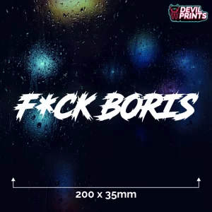 Whether we agree or not, f*ck Boris! Finished in Premium quality weather-resistant vinyl. Suitable for vehicle windows windows and bodywork, boats, mirrors, laptops or any smooth surface.