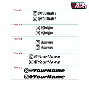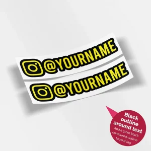 Supplied as a set of two, our custom Instagram stickers are cheap and effective advertising for your social media account, brands, businesses and anything else you can think of. Finished in Premium quality weather-resistant vinyl. Suitable for vehicle windows windows and bodywork, boats, mirrors, laptops or any smooth surface.