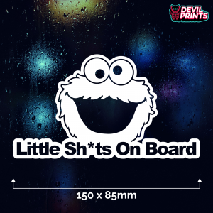 This Little Shits On Board Cookie Monster sticker is the perfect way to add a touch of humor to your car or any other smooth surface. Made from high-quality vinyl, this sticker features the iconic Cookie Monster from Sesame Street with a playful twist. The bold colors and detailed design make it eye-catching and sure to grab attention wherever you stick it. Whether you’re a fan of Cookie Monster or just looking for a fun and unique sticker, this Little Shits On Board Cookie Monster sticker is a must-have. Stick it on your car, laptop, or even your water bottle to show off your playful side.