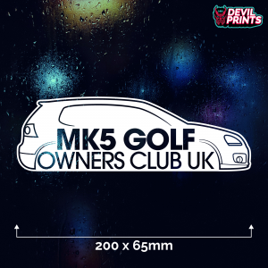 We are the proud suppliers of the Mk5 Golf Owners Club UK stickers. Finished in Premium quality weather-resistant vinyl. Suitable for vehicle windows windows and bodywork, boats, mirrors, laptops or any smooth surface.