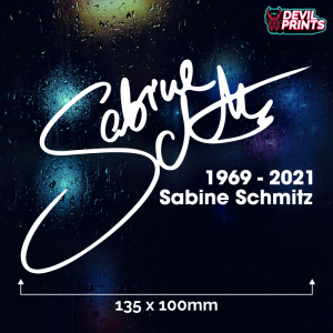 Gone but never forgotten, keep the spirit of the legend that is Sabine Shmitz alive. Suitable for vehicle windows windows and bodywork, boats, mirrors, laptops or any smooth surface.