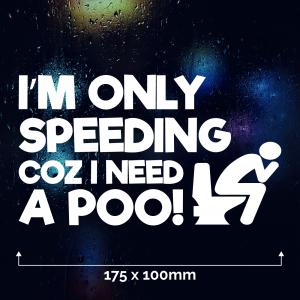 The Speeding Because I Need A Poo vinyl decal sticker is the perfect way to add a touch of humor to your car or any other smooth surface. Made from high-quality vinyl, this sticker is durable and weatherproof, ensuring it will last for a long time. The bold and eye-catching design features the phrase “Speeding Because I Need A Poo” in a fun and playful font, making it a great conversation starter. Whether you want to add some personality to your vehicle or simply want to make people smile, this decal sticker is a must-have. Easy to apply, making it a hassle-free way to customize your belongings. So go ahead, embrace your quirky side and let everyone know that sometimes nature calls when you’re on the road!