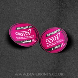 Elevate your Subaru’s style and authenticity with our set of 2 full-color printed reproduction STI radiator cap decal stickers, designed specifically for Subaru enthusiasts. Measuring a perfect 58x58mm, these high-quality stickers are crafted to replicate the original look and feel, ensuring a seamless fit on your vehicle. Made from durable materials, they are resistant to fading and wear, making them ideal for both daily drivers and show cars. Easy to apply, these stickers will not only enhance the aesthetic appeal of your radiator cap but also showcase your passion for the Subaru brand. Upgrade your ride today and let your Subaru stand out with these striking STI radiator cap stickers!